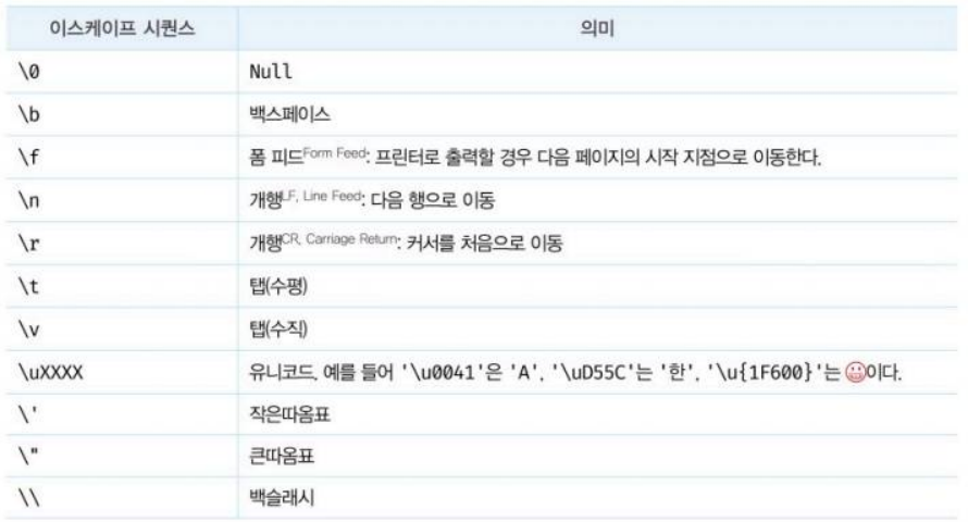 1) 일반 문자열 : 줄바꿈(개행)이 허용되지 않아 이스케이프 시퀀스 사용