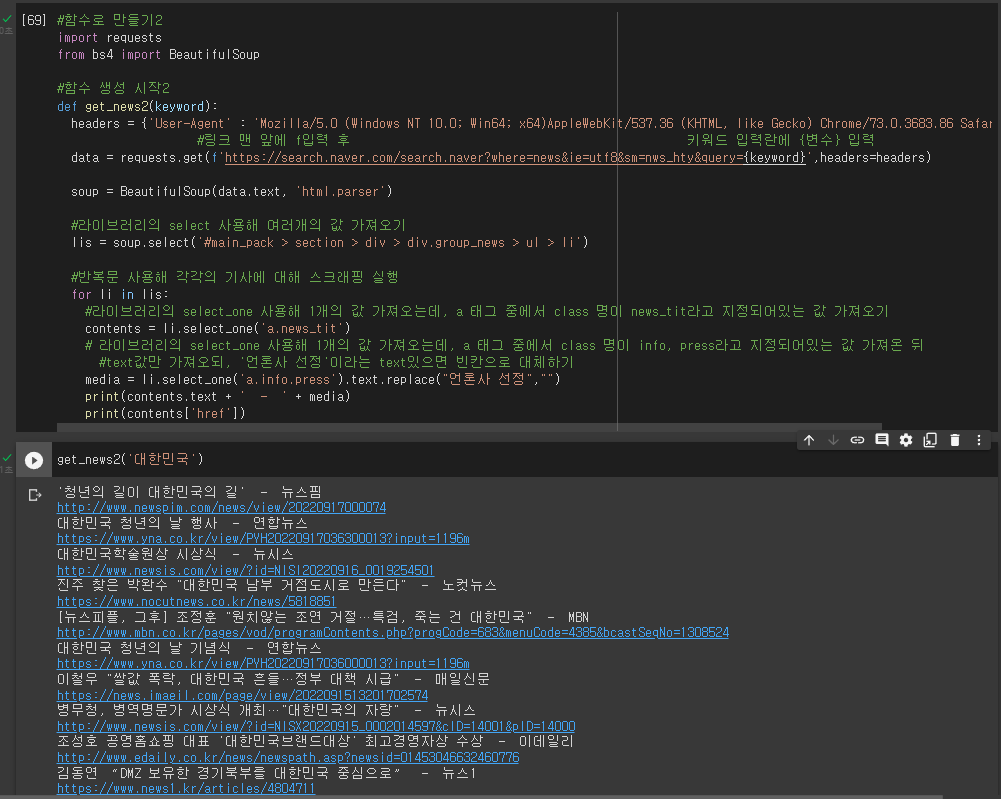 3] 함수로 만들어 여러가지 키워드 스크래핑이 가능한 함수 만들기