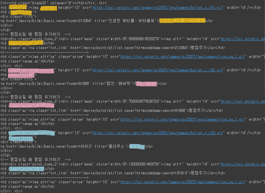 3) 평점 : tr내의 td 중 'point'라는 클래스를 가진 td의 'text'값