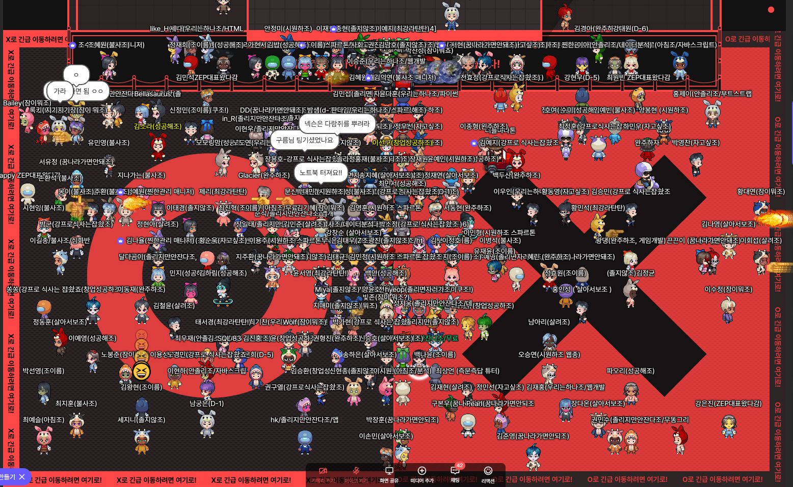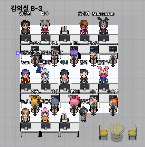 [2:38] 게임.. 재밌는데 아무래도 게임을 잘 못하다 보니, 오히려 코딩할 때 보다 조금 잠이 오는 것 같아서, 좀비게임, 색칠하기게임 등등 게임방을 한 바퀴 돌아보고는 바로 강의실로 복귀했다..! 그래도 메타버스에서 이런저런 체험을 해볼 수 있음에 감사했던 40분의 휴식이었다..!