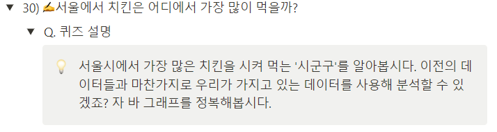 11] Quiz 3 : 서울에서 치킨은 어디에서 가장 많이 먹을까