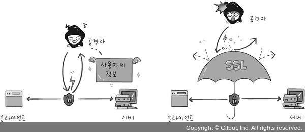 ㄴ클라이언트와 서버가 통신할 때 SSL/TLS를 통해 제3자가 메시지를 도청하거나 변조하지 못하게 막음.