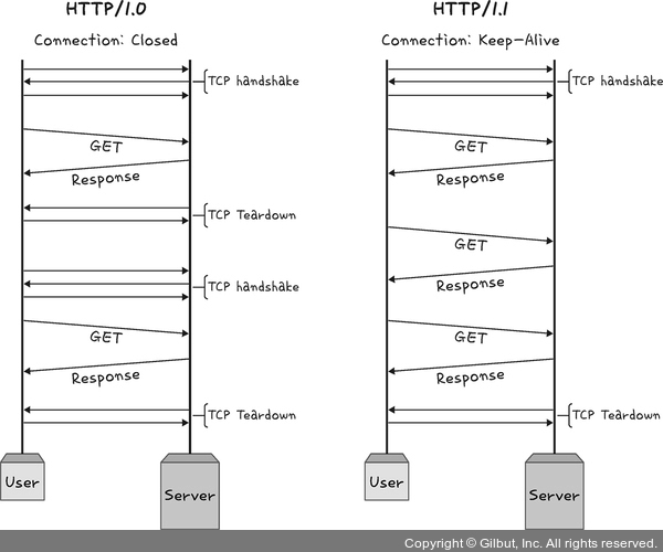 ㄴ HTTP/1.0에도 keep-alive존재. but 표준화가 되어 있지 않았었음.