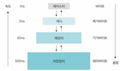 ㄴ실제로 메모리와 CPU 사이의 속도 차이가 크기 때문에, 레지스터 계층을 통해 속도차 해결.
