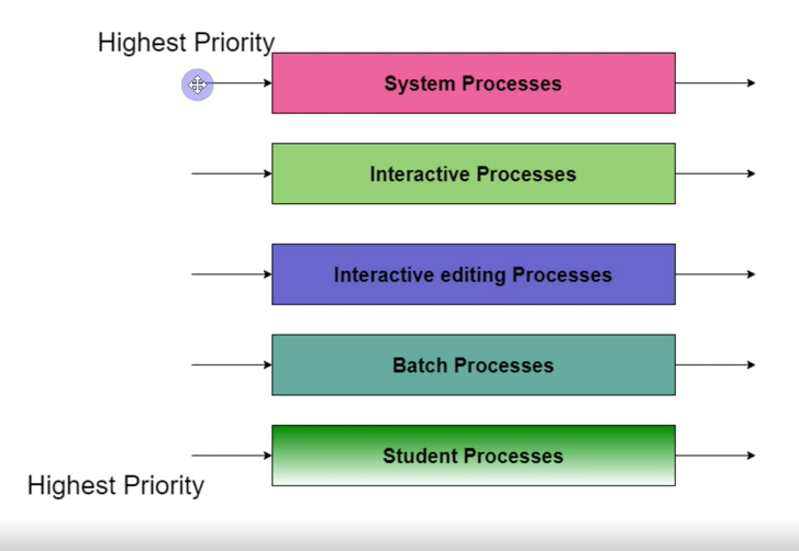 3) 다단계 큐 : 우선순위에 따른 준비 큐를 여러개 사용하고, 큐마다 라운드 로빈이나 FCFS 등 다른 스케줄링 알고리즘을 적용한 것 (비선점형 알고리즘도 있다.)