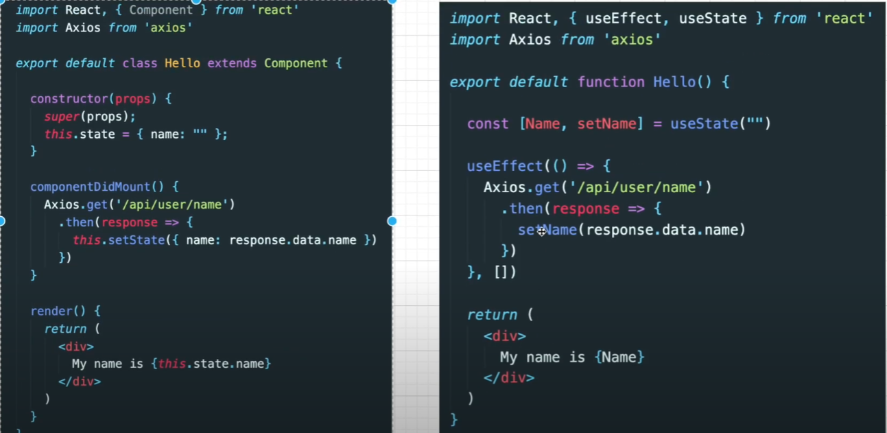 - 2) 하지만 react 16.8 이후에는 대부분이 functional component를 통해서 Hook을 이용해서 사용 가능해짐.