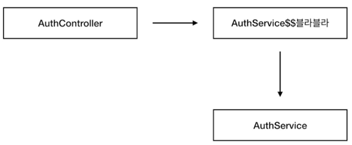 - 프록시 패턴 기반의 AOP 구현체, 프록시 객체를 쓰는 이유는 접근 제어 및 부가기능을 추가하기 위해서임