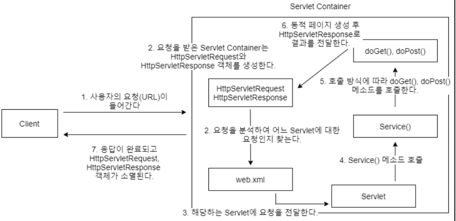 ✅ 서블릿(Servlet)은 클라이언트 요청을 처리하고, 그 결과를 반환하는 웹 프로그래밍 기술을 말함.