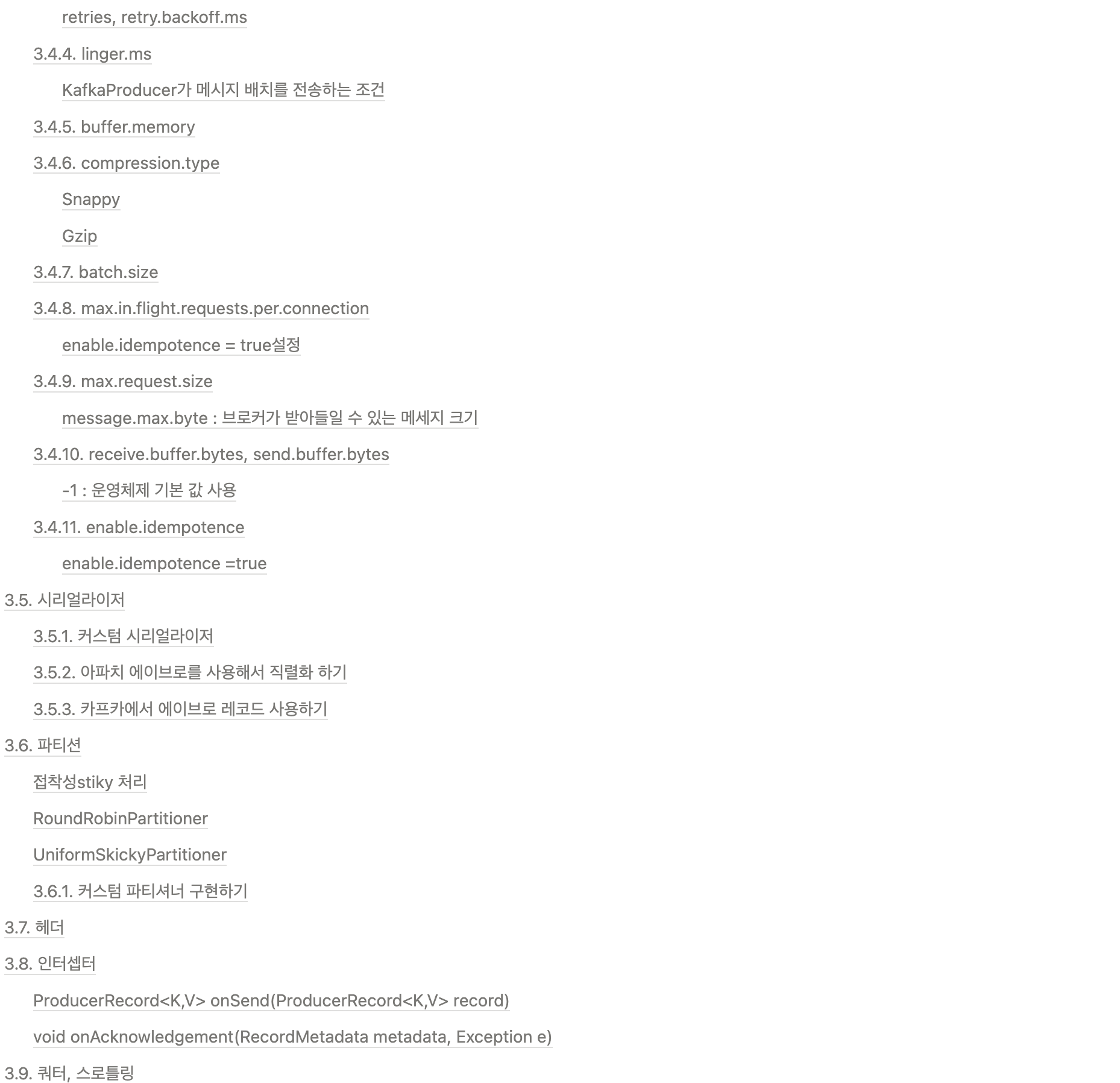 - 프로듀서의 작동을 제어하기 위해 사용되는 설정 옵션