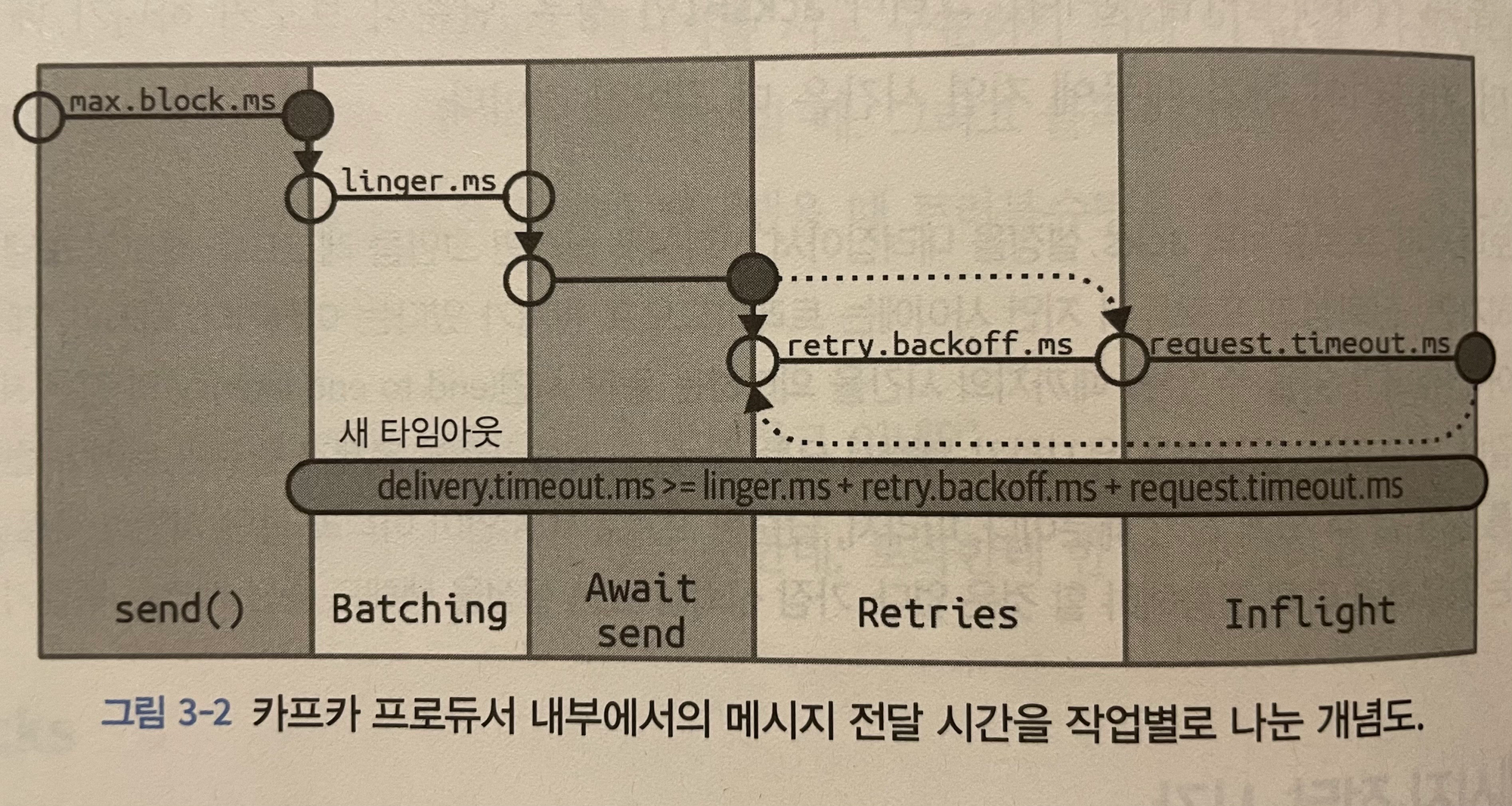 프로듀서가 메시지 배치를 채울 때 다음 배치로 넘어가기 전, 이전 배치를 먼저 채우게 되어있음.