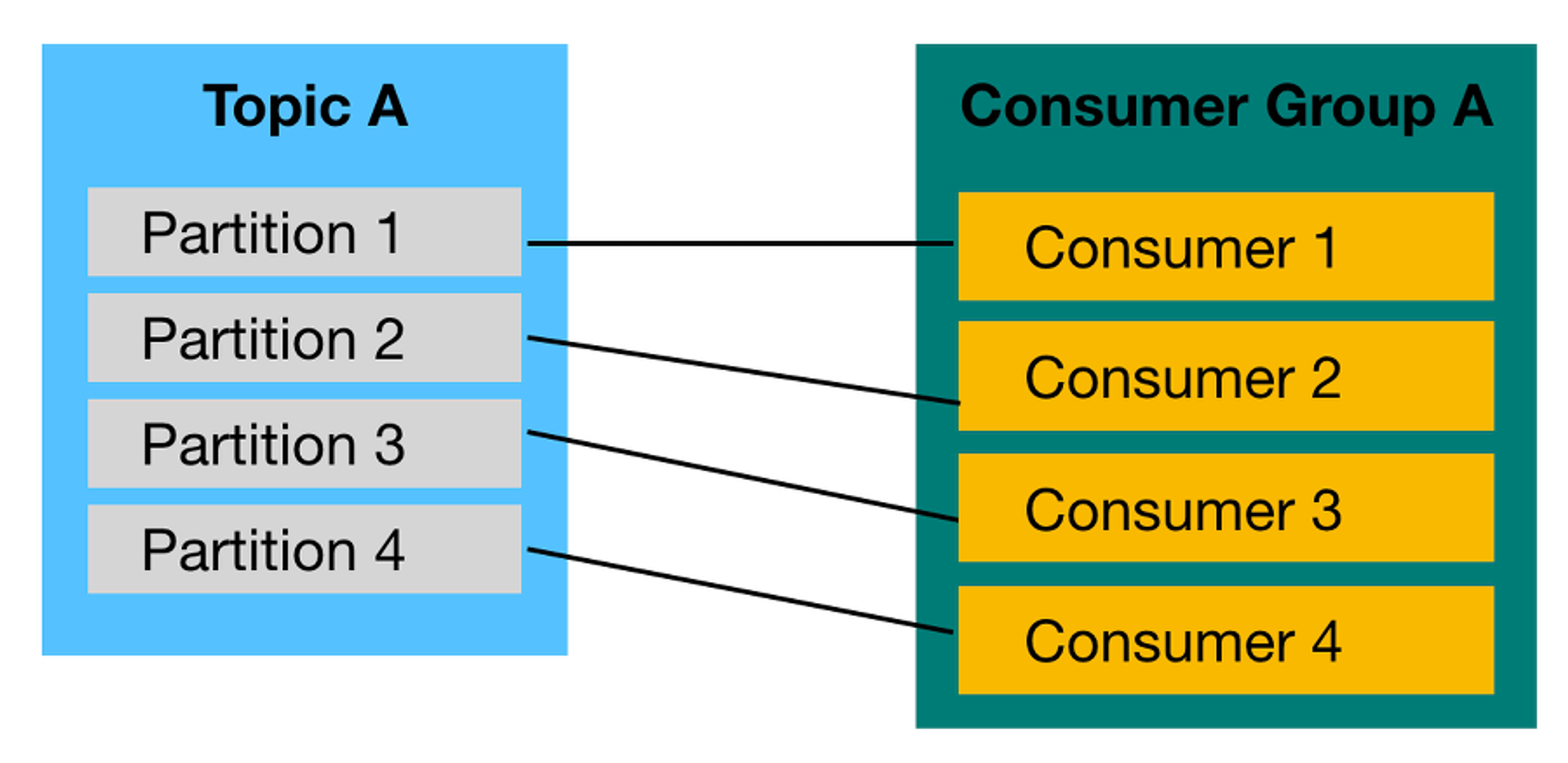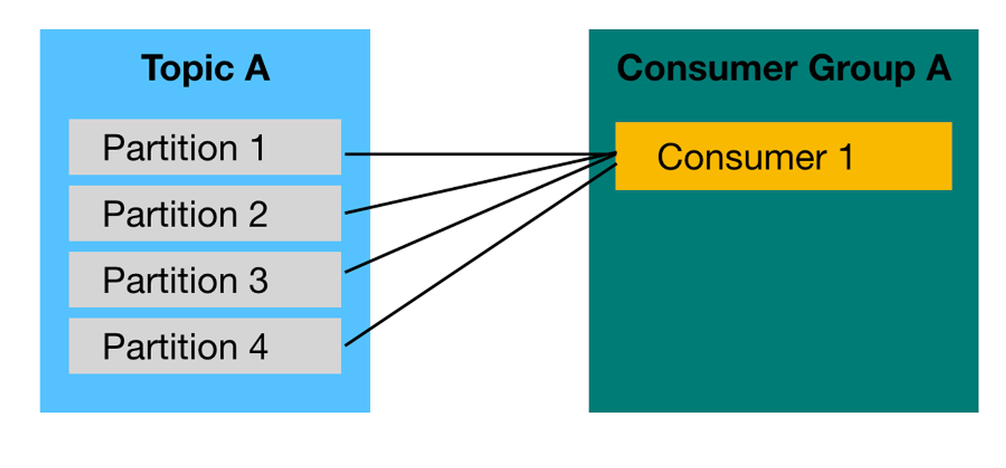 - 만일 G1 컨슈머 그룹에 네 개의 컨슈머가 있다면, 각 컨슈머는 하나의 파티션에서만 읽으면 된다!