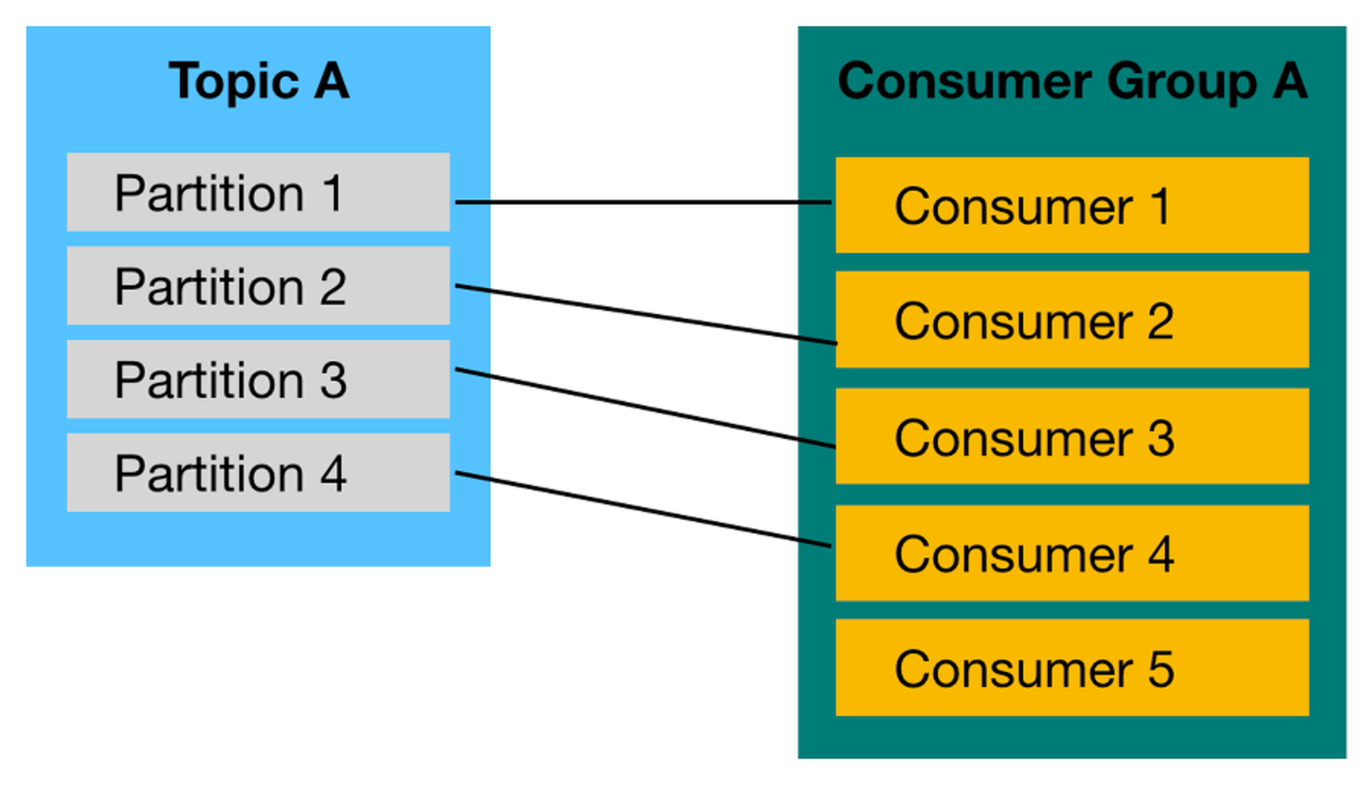 - 만약 컨슈머 그룹에 더 많은 수의 컨슈머를 추가한다면, 일부 컨슈머가 놀게 된다!