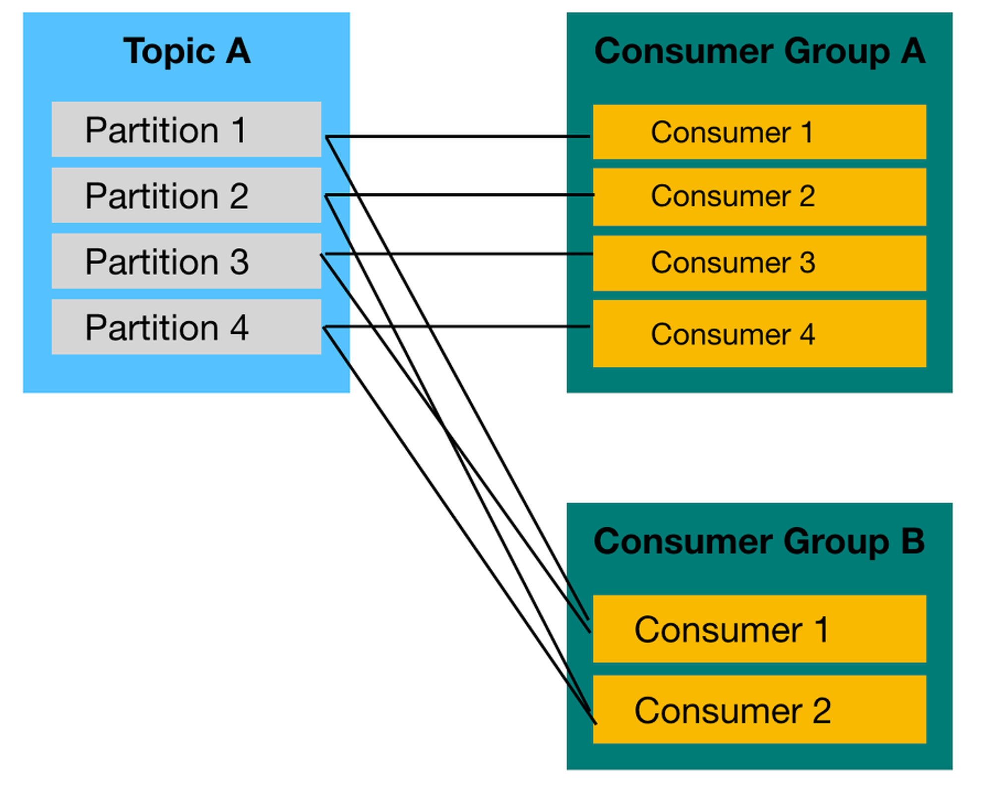 - 해당 그룹의 각 컨슈머는 토픽의 일부 파티션에 있는 메시지만 읽으면 된다.