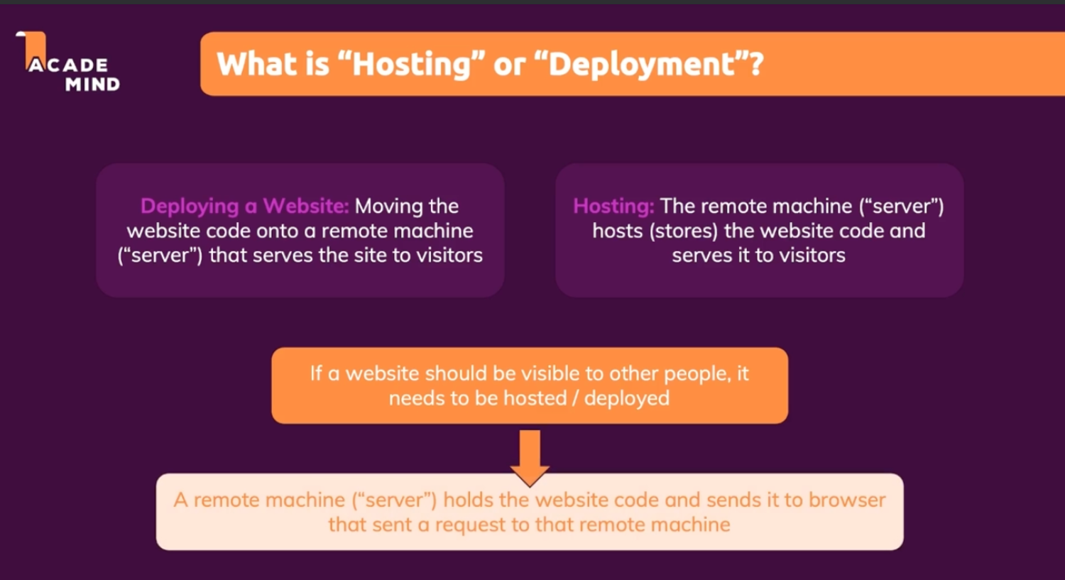 원격 컴퓨터가 웹사이트의 코드를 저장 혹은 호스트 하여, 사용자의 요청을 받으면 응답으로 웹사이트 코드를 보내주는 것.