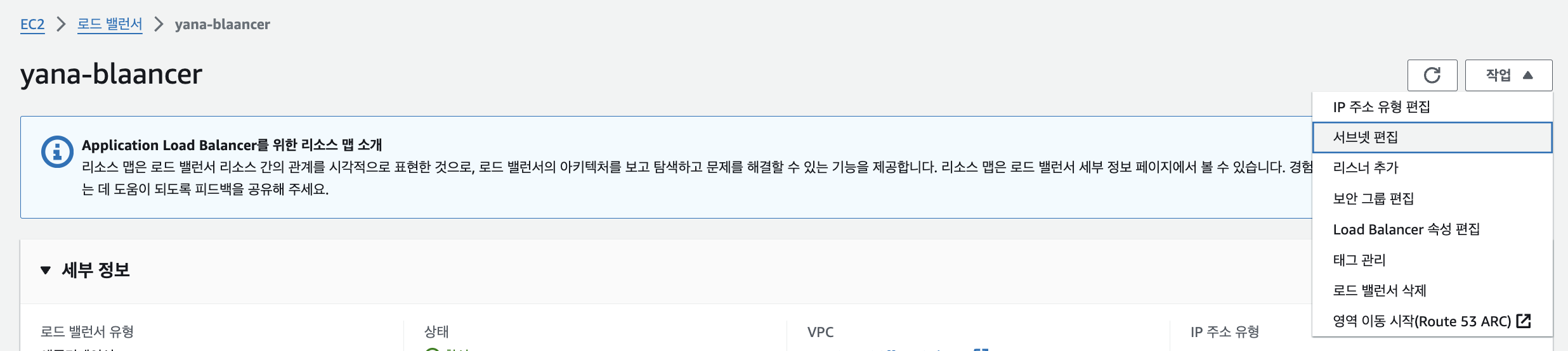 - load balancer의 작업 중 [서브넷 편집]을 사용한다
