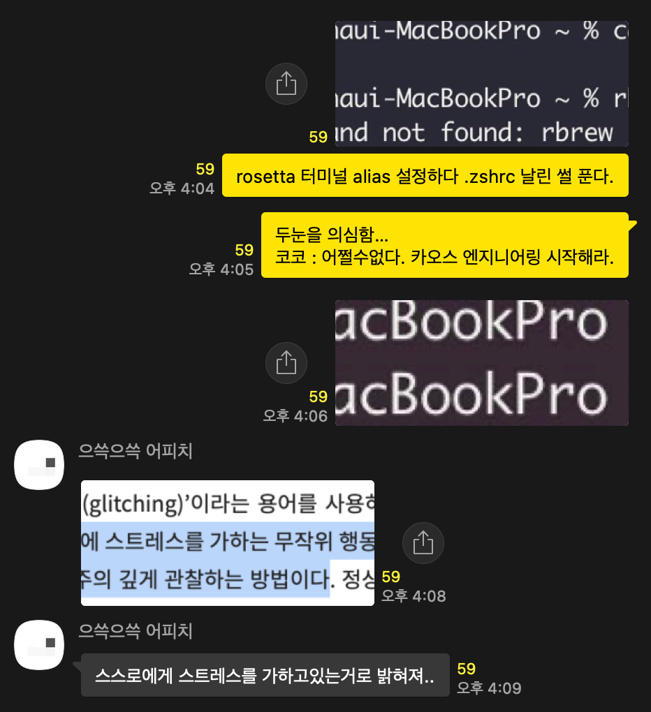 - rosetta 전용 iterm shell 을 생성하고, 관련 alias를 생성하던 중.. 잘못된 명령어를 입력해 .zsh 파일이.. 덮어씌워졌다.
