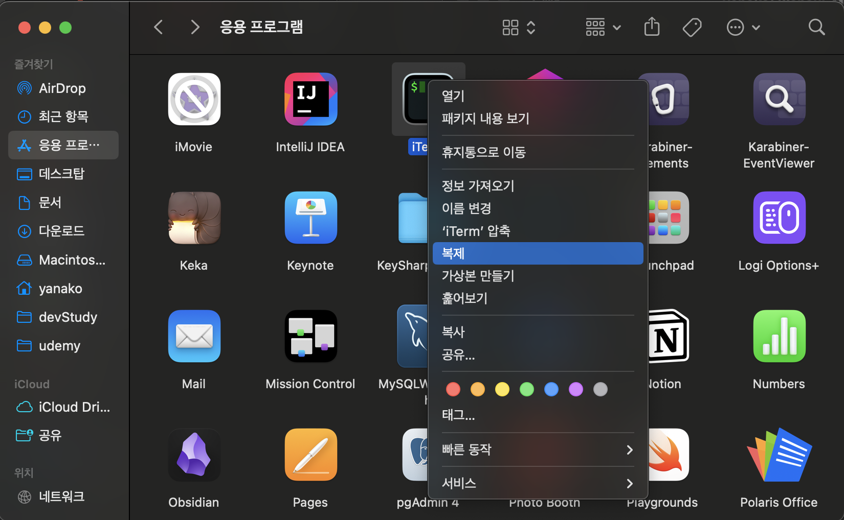 2. iterm2를 우클릭 - "복제" 선택