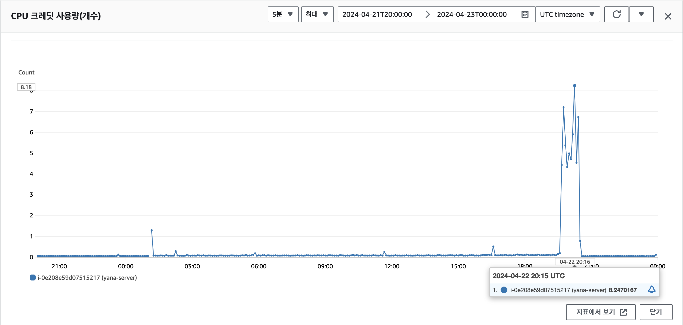 - 모니터링을 확인해보니, compose up을 실행한 후 하루가 되지 않아 실제로 cpu 사용율과 cpu크레딧 사용량이 튀면서 더이상 네트워크 패킷이 정상적으로 오가지 않는 것을 확인할 수 있었다.