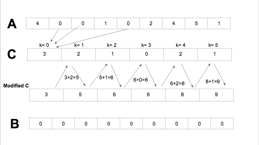 // 일반적인 Counting sort 과정