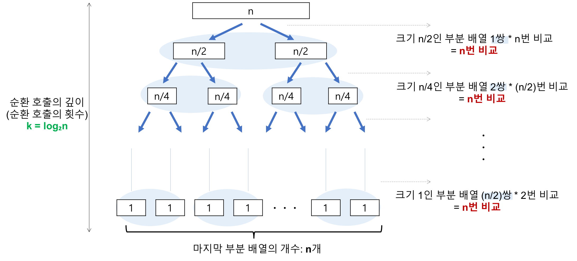 - 순환 호출의 깊이 * 각 순환 호출 단계의 비교 연산