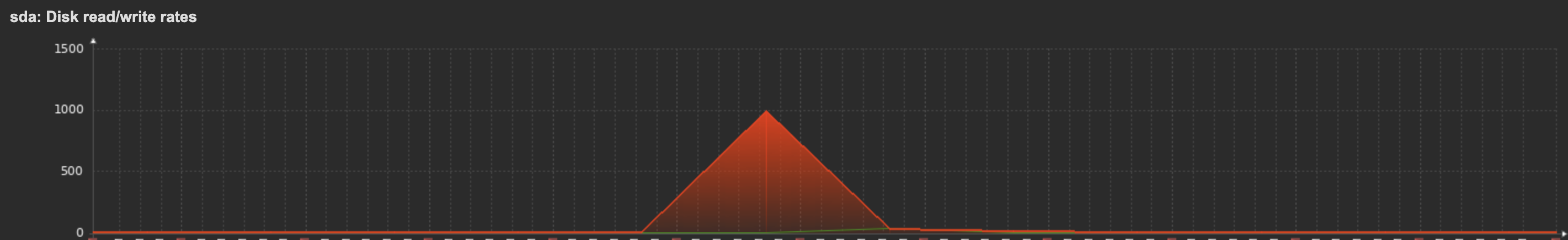 - 그리고 나타난... 짜잔..!!! health check가 fail 나기 전후에 Disk read/write rates 가 왜 증가했을까?