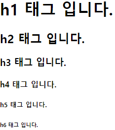 2) h1,2,3,4,5,6 태그(h#태그) : 문서 제목 태그.